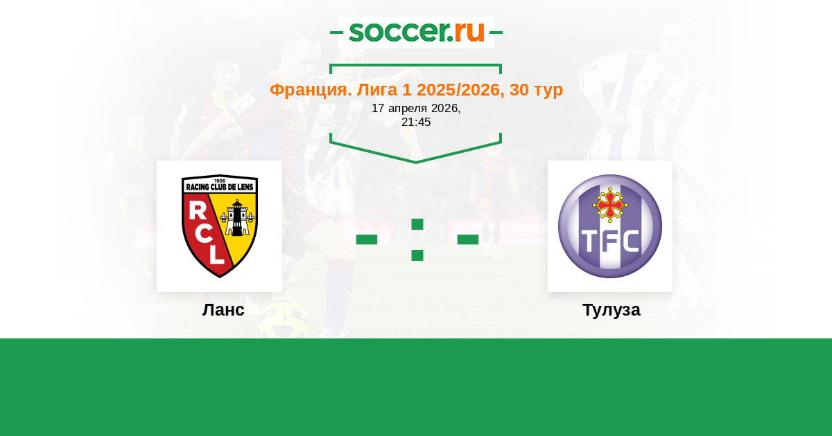 Франция. Лига 1 05.01.2025 Ланс Логотип футбольный клуб Ланс 0:1 Логотип футбольный клуб Тулуза Тулуза