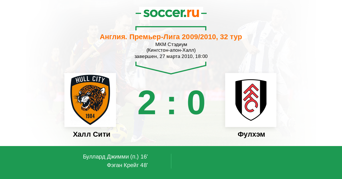 Англия. Премьер-Лига 04.03.2009 Фулхэм Логотип футбольный клуб Фулхэм (Лондон) 0:1 Логотип футбольный клуб Халл Сити (Кингстон-апон-Халл) Халл Сити