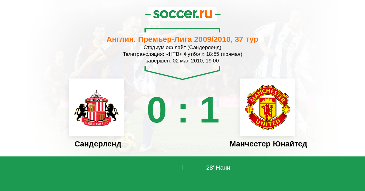 Англия. Премьер-Лига 02.10.2010 Сандерленд Логотип футбольный клуб Сандерленд 0:0 Логотип футбольный клуб Манчестер Юнайтед Манчестер Юнайтед