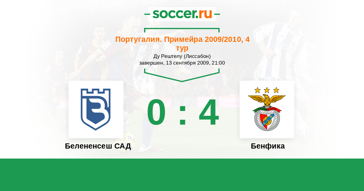 Португалия. Примейра 13.02.2010 Бенфика Логотип футбольный клуб Бенфика (Лиссабон) 1:0 Логотип футбольный клуб Белененсеш САД (Лиссабон) Белененсеш САД