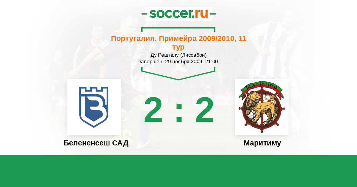 Португалия. Примейра 11.04.2010 Маритиму Логотип футбольный клуб Маритиму (Фуншал) 3:3 Логотип футбольный клуб Белененсеш САД (Лиссабон) Белененсеш САД