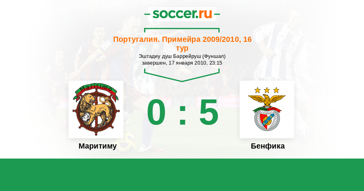 Португалия. Примейра 06.01.2016 Бенфика Логотип футбольный клуб Бенфика (Лиссабон) 6:0 Логотип футбольный клуб Маритиму (Фуншал) Маритиму