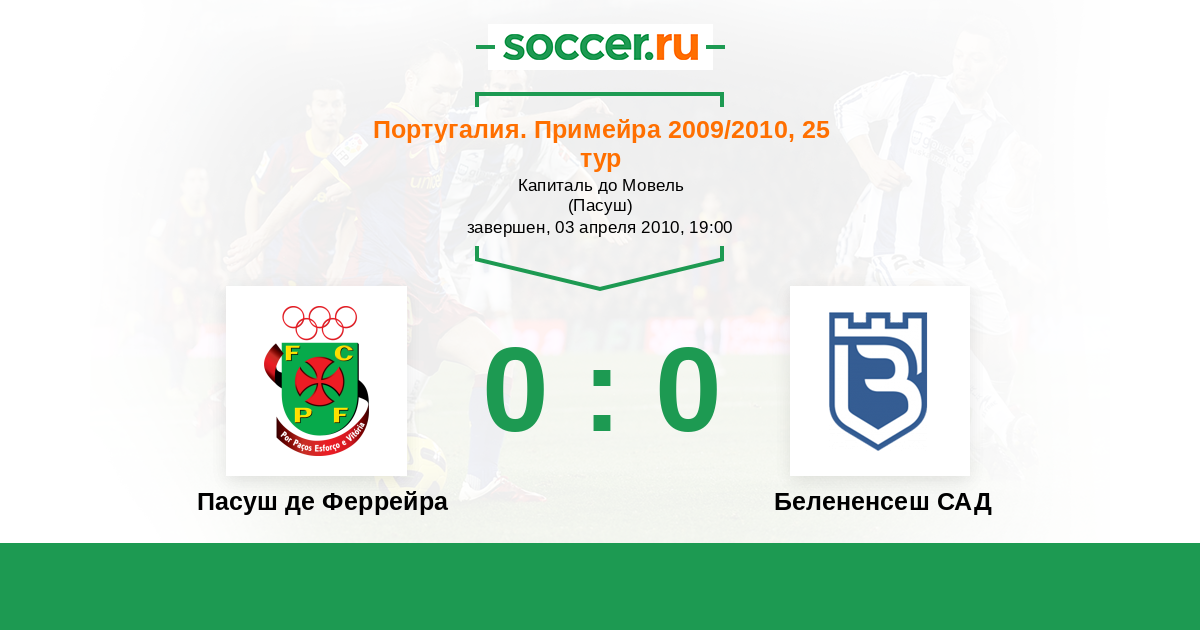 Португалия. Примейра 06.11.2009 Белененсеш САД Логотип футбольный клуб Белененсеш САД (Лиссабон) 0:3 Логотип футбольный клуб Пасуш де Феррейра Пасуш де Феррейра
