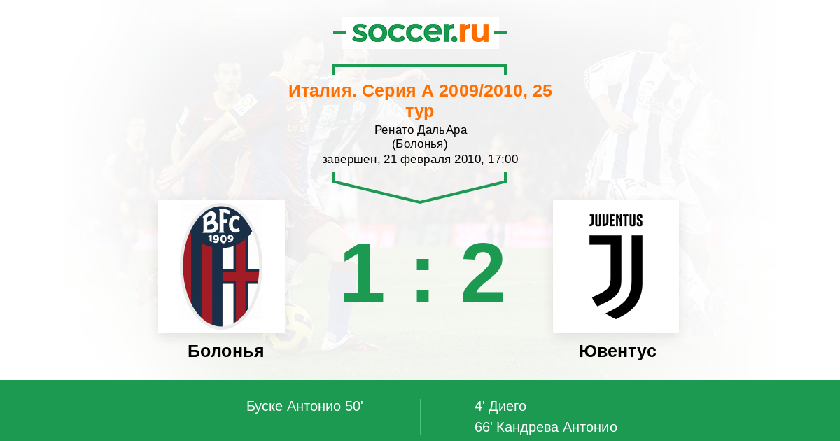 Италия. Серия А 24.10.2010 Болонья Логотип футбольный клуб Болонья 0:0 Логотип футбольный клуб Ювентус (Турин) Ювентус