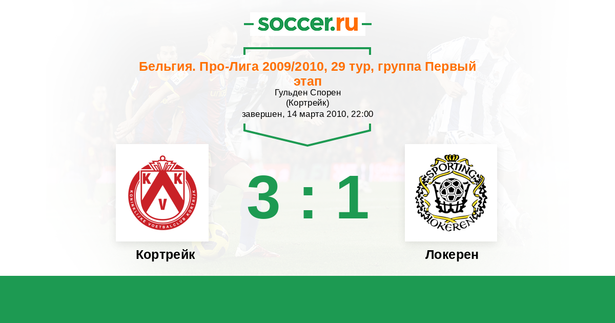 Бельгия. Про-Лига 07.11.2009 Локерен Логотип футбольный клуб Локерен 0:0 Логотип футбольный клуб Кортрейк Кортрейк