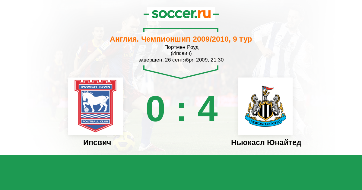 Англия. Чемпионшип 24.04.2010 Ньюкасл Юнайтед Логотип футбольный клуб Ньюкасл Юнайтед (Ньюкасл-апон-Тайн) 2:2 Логотип футбольный клуб Ипсвич Ипсвич