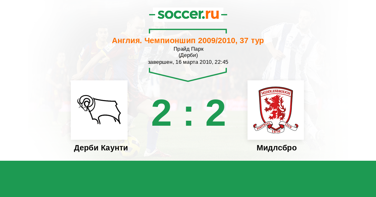 Англия. Чемпионшип 20.10.2009 Мидлсбро Логотип футбольный клуб Мидлсбро 2:0 Логотип футбольный клуб Дерби Каунти Дерби Каунти