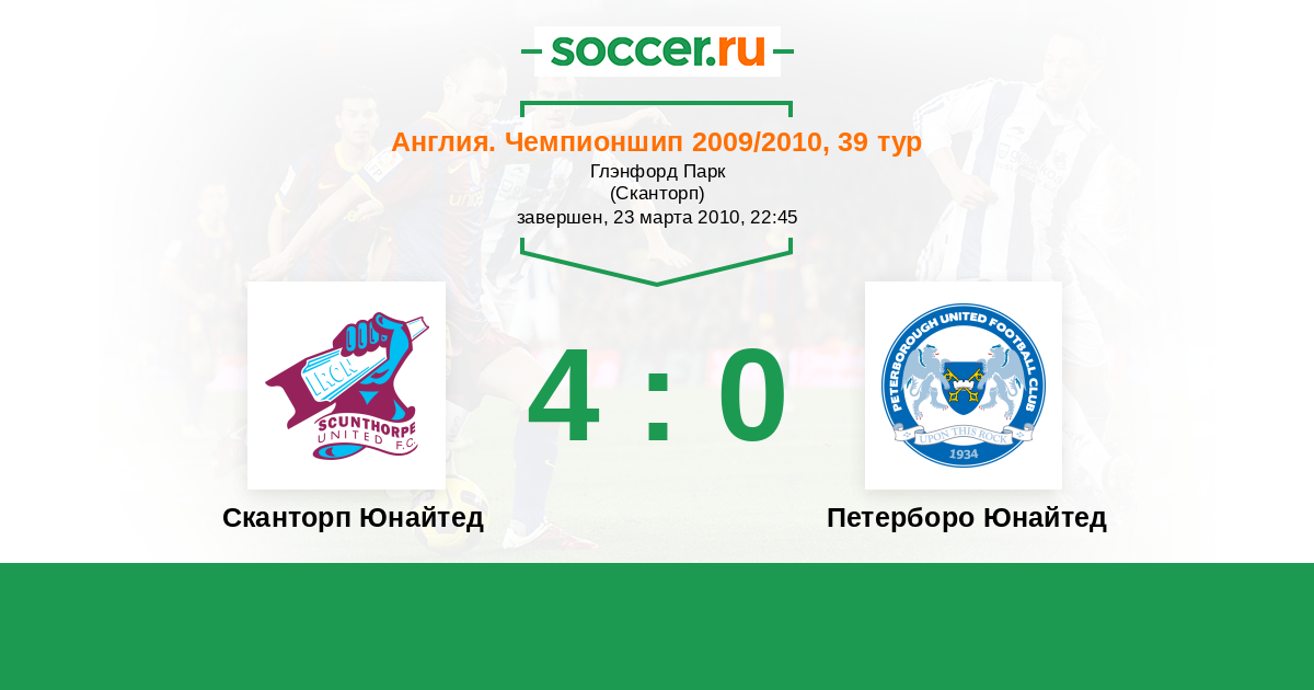 Англия. Первая Футбольная Лига 10.03.2009 Петерборо Юнайтед Логотип футбольный клуб Петерборо Юнайтед 2:1 Логотип футбольный клуб Сканторп Юнайтед Сканторп Юнайтед
