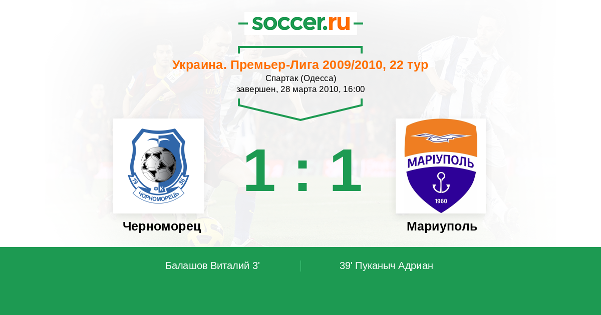 Украина. Премьер-Лига 14.08.2011 Ильичевец Логотип футбольный клуб Ильичевец (Мариуполь) 1:1 Логотип футбольный клуб Черноморец (Одесса) Черноморец