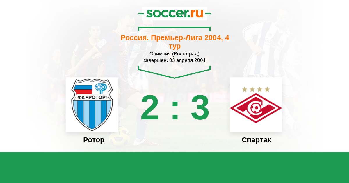 Россия. Премьер-Лига 23.10.2004 Спартак Логотип футбольный клуб Спартак (Москва) 1:1 Логотип футбольный клуб Ротор (Волгоград) Ротор