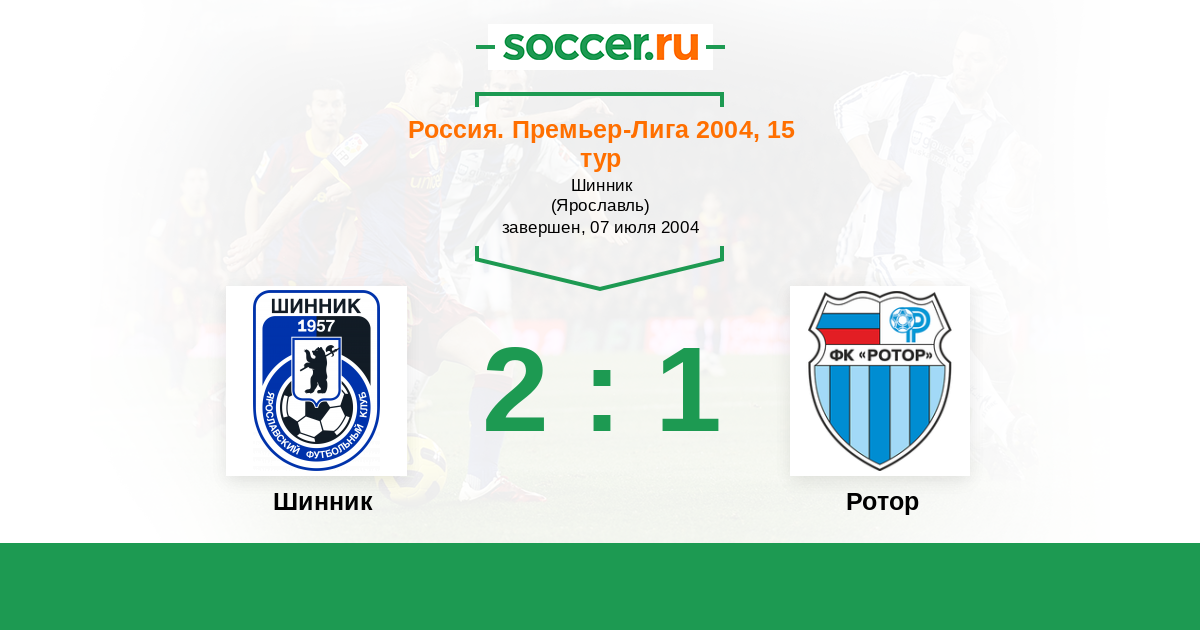 Россия. Премьер-Лига 25.08.2004 Ротор Логотип футбольный клуб Ротор (Волгоград) 0:2 Логотип футбольный клуб Шинник (Ярославль) Шинник