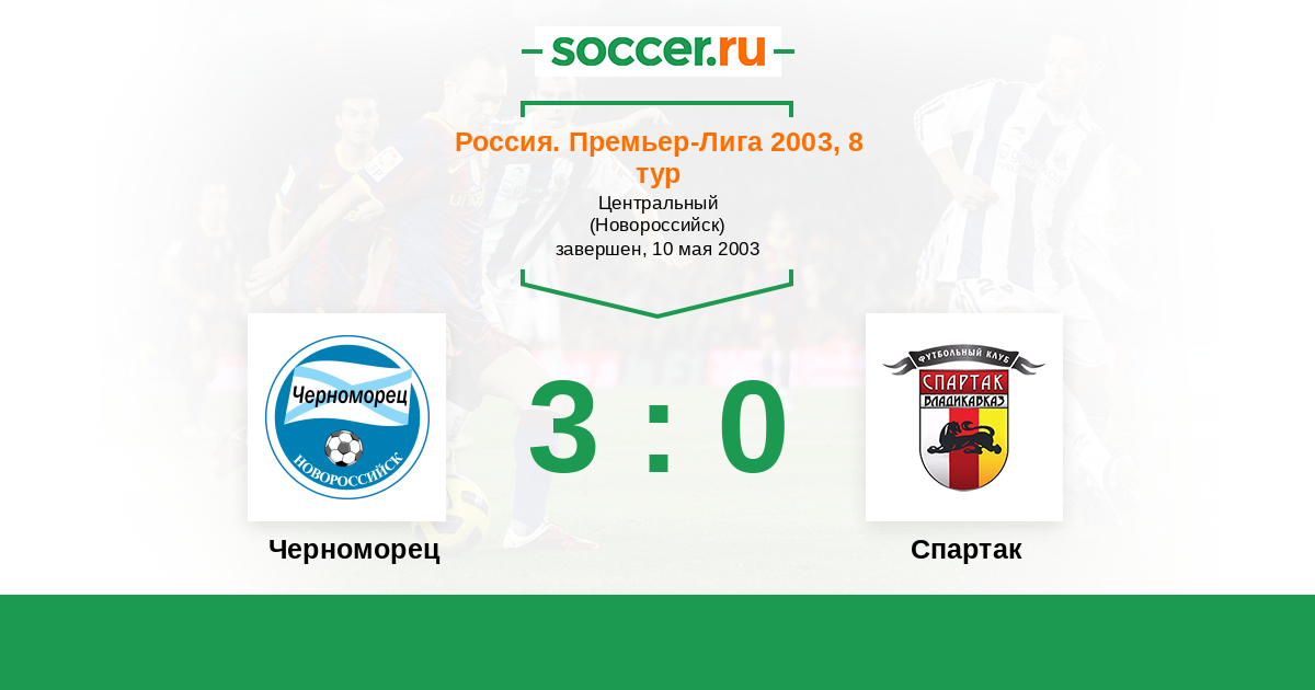 Россия. Премьер-Лига 31.08.2003 Спартак-Алания Логотип футбольный клуб Спартак-Алания (Владикавказ) 1:0 Логотип футбольный клуб Черноморец (Новороссийск) Черноморец