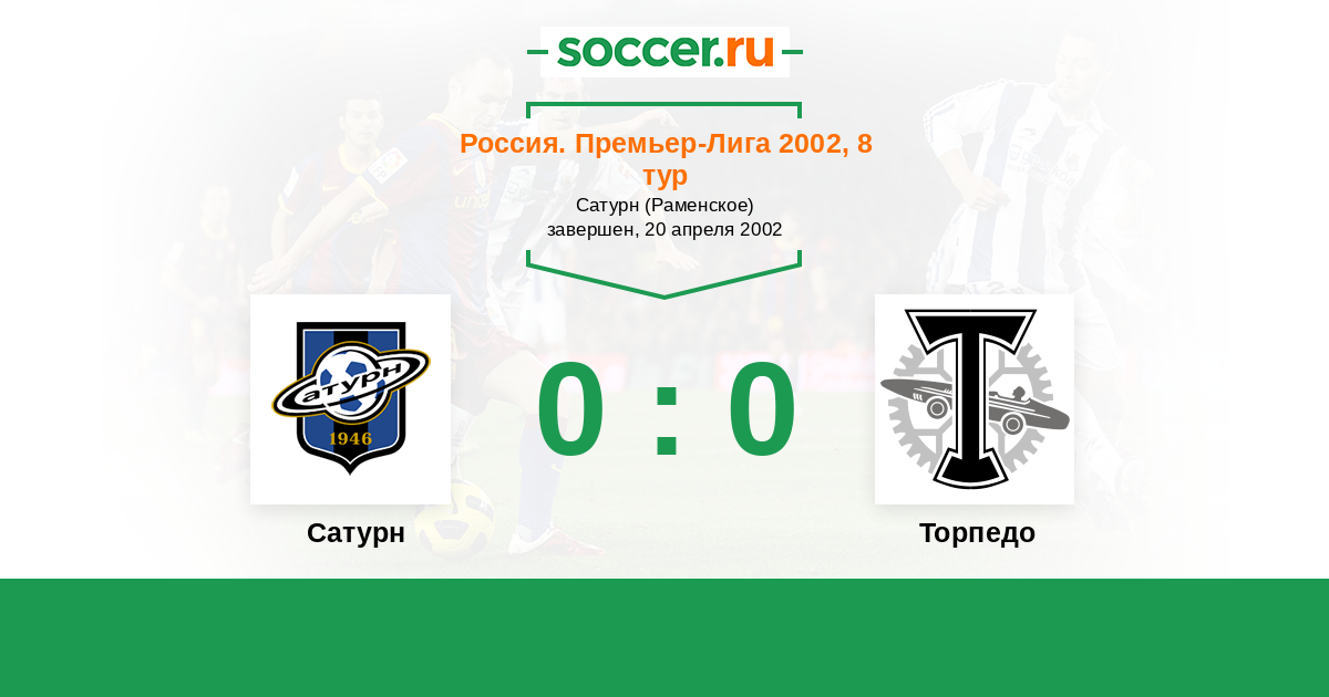 Россия. Премьер-Лига 10.11.2002 Торпедо Логотип футбольный клуб Торпедо (Москва) 1:1 Логотип футбольный клуб Сатурн (Раменское) Сатурн