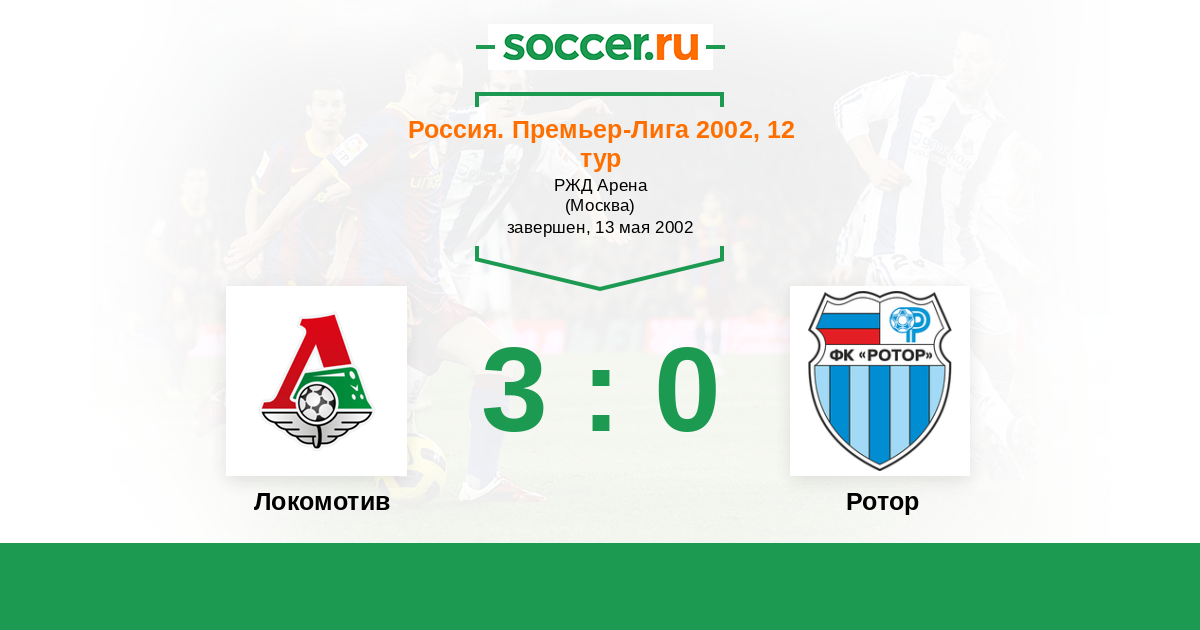 Россия. Премьер-Лига 07.08.2002 Ротор Логотип футбольный клуб Ротор (Волгоград) 0:2 Логотип футбольный клуб Локомотив (Москва) Локомотив