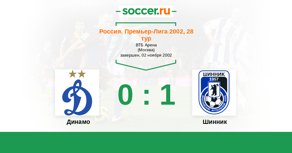Россия. Премьер-Лига 28.09.2003 Динамо Логотип футбольный клуб Динамо (Москва) 1:2 Логотип футбольный клуб Шинник (Ярославль) Шинник
