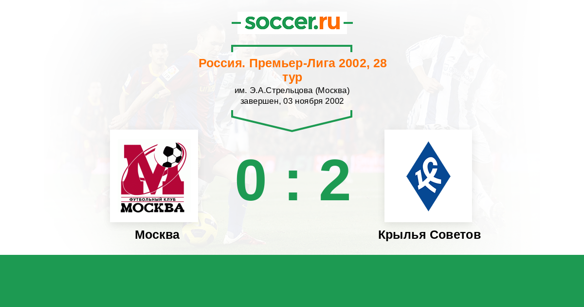 Россия. Премьер-Лига 30.03.2002 Крылья Советов Логотип футбольный клуб Крылья Советов (Самара) 0:0 Логотип футбольный клуб Торпедо-ЗИЛ (Москва) Торпедо-ЗИЛ