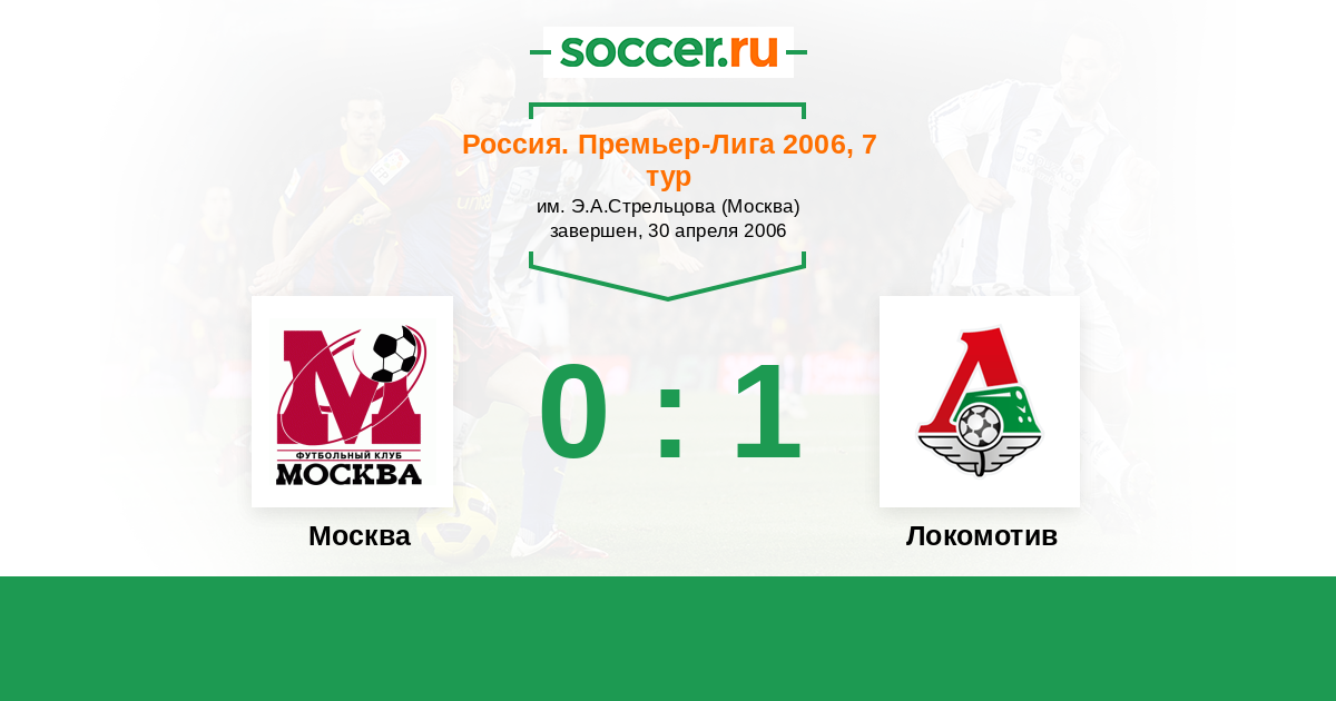 Россия. Премьер-Лига 14.10.2006 Локомотив Логотип футбольный клуб Локомотив (Москва) 0:1 Логотип футбольный клуб ФК Москва ФК Москва