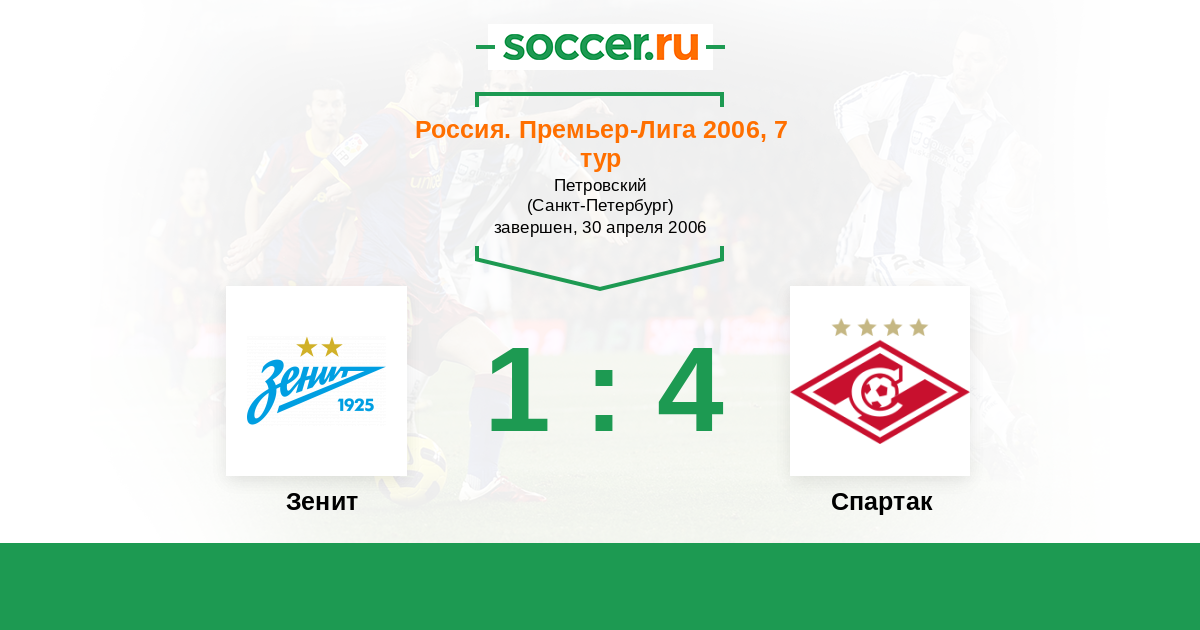 Россия. Премьер-Лига 14.10.2006 Спартак Логотип футбольный клуб Спартак (Москва) 1:0 Логотип футбольный клуб Зенит (Санкт-Петербург) Зенит