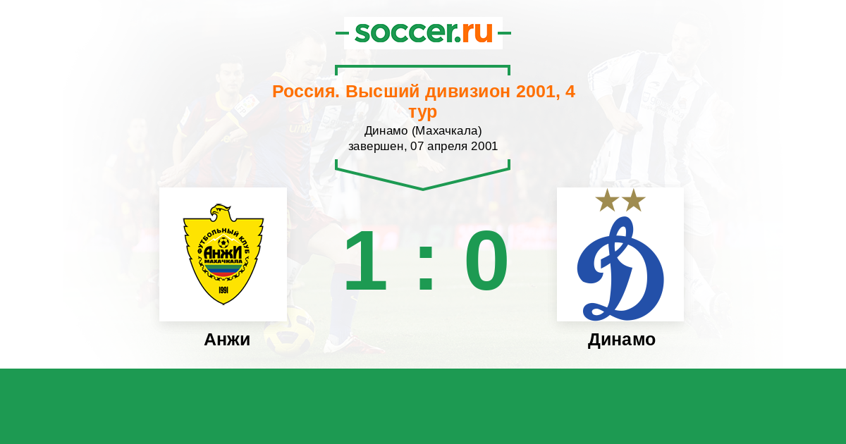 Россия. Премьер-Лига 22.07.2001 Динамо Логотип футбольный клуб Динамо (Москва) 1:1 Логотип футбольный клуб Анжи (Махачкала) Анжи