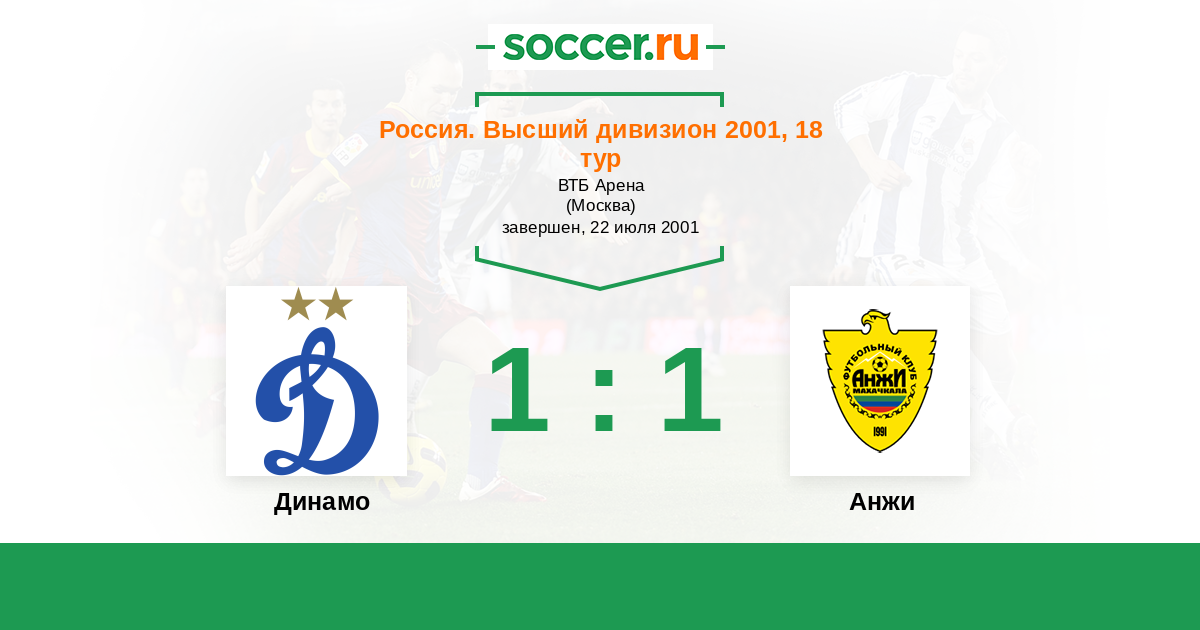Россия. Премьер-Лига 07.04.2001 Анжи Логотип футбольный клуб Анжи (Махачкала) 1:0 Логотип футбольный клуб Динамо (Москва) Динамо