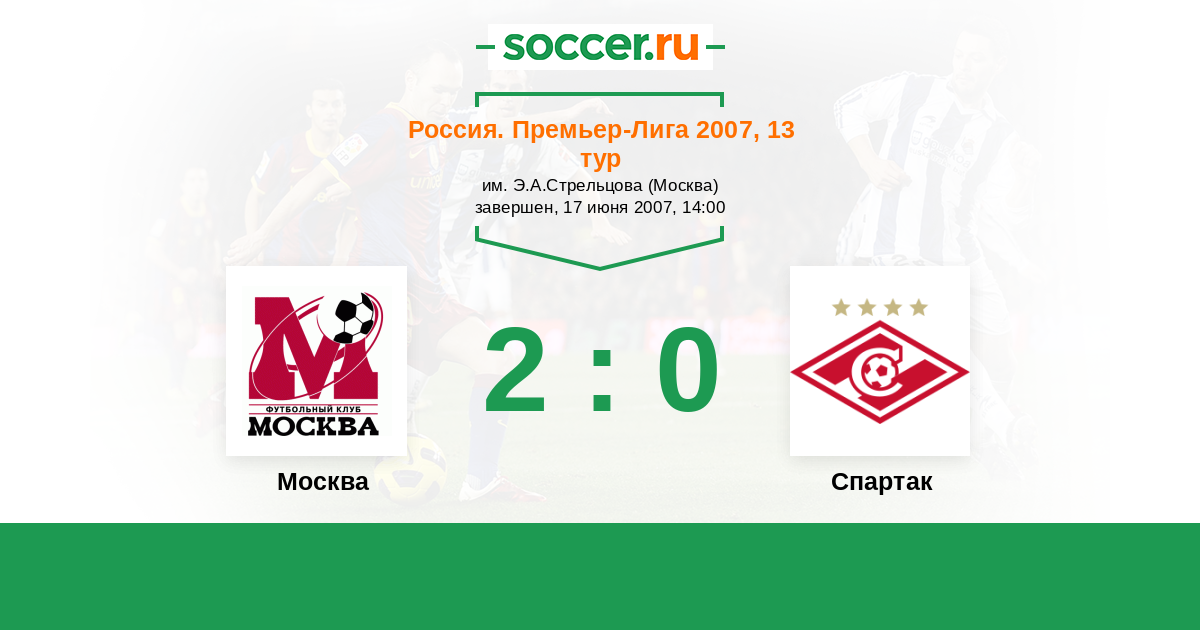 Россия. Премьер-Лига 20.10.2007 Спартак Логотип футбольный клуб Спартак (Москва) 3:1 Логотип футбольный клуб ФК Москва ФК Москва