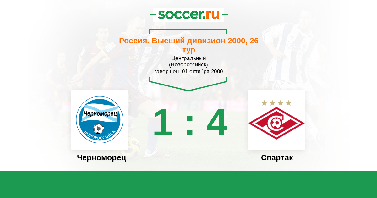 Россия. Премьер-Лига 12.06.2000 Спартак Логотип футбольный клуб Спартак (Москва) 3:1 Логотип футбольный клуб Черноморец (Новороссийск) Черноморец