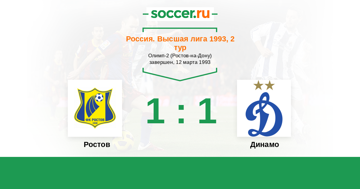 Россия. Премьер-Лига 17.10.1992 Ростсельмаш Логотип футбольный клуб Ростсельмаш (Ростов-на-Дону) 0:2 Логотип футбольный клуб Динамо (Москва) Динамо