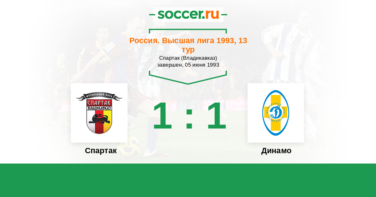 Россия. Премьер-Лига 24.09.1993 Динамо Ставрополь Логотип футбольный клуб Динамо Ставрополь 2:0 Логотип футбольный клуб Спартак (Владикавказ) Спартак