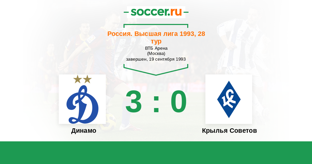 Россия. Премьер-Лига 16.05.1993 Крылья Советов Логотип футбольный клуб Крылья Советов (Самара) 1:0 Логотип футбольный клуб Динамо (Москва) Динамо
