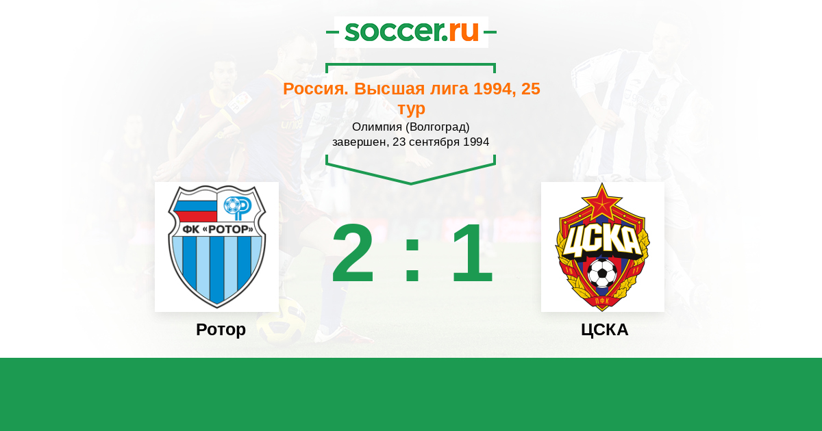 Россия. Премьер-Лига 30.08.1995 Ротор Логотип футбольный клуб Ротор (Волгоград) 2:2 Логотип футбольный клуб ЦСКА (Москва) ЦСКА