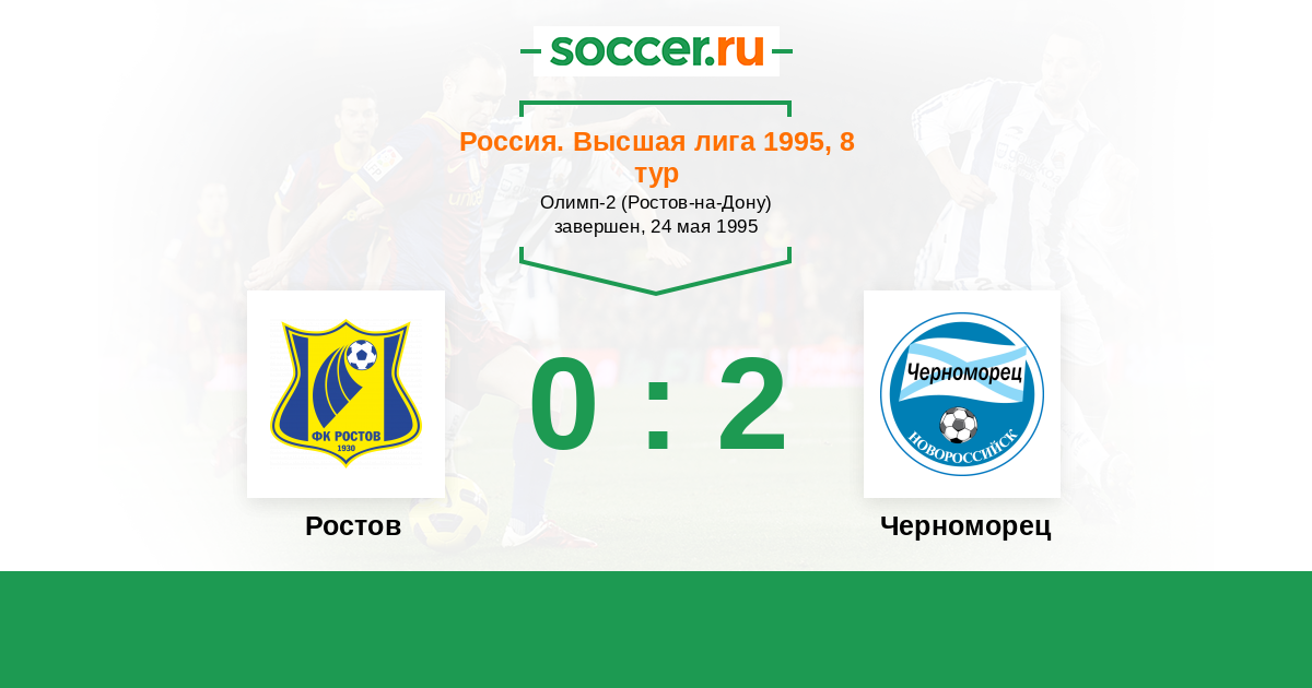 Россия. Премьер-Лига 22.07.1995 Черноморец Логотип футбольный клуб Черноморец (Новороссийск) 2:1 Логотип футбольный клуб Ростсельмаш (Ростов-на-Дону) Ростсельмаш