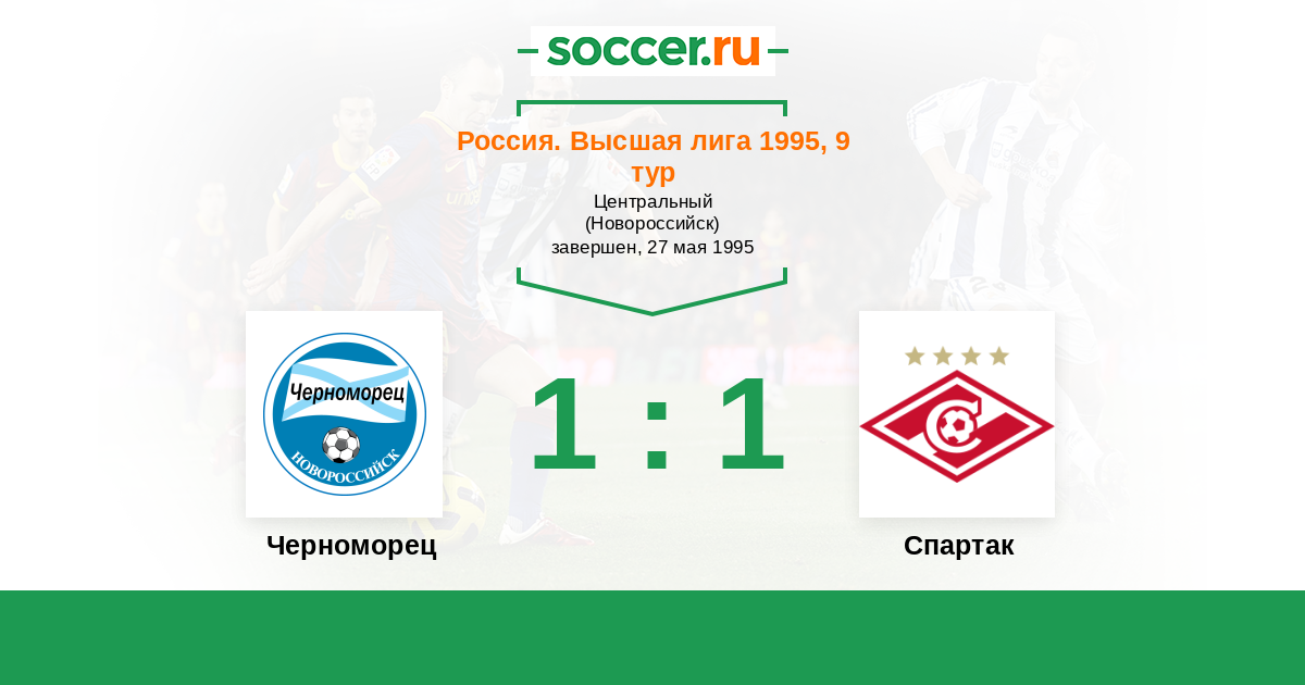 Россия. Премьер-Лига 15.07.1995 Спартак Логотип футбольный клуб Спартак (Москва) 5:0 Логотип футбольный клуб Черноморец (Новороссийск) Черноморец