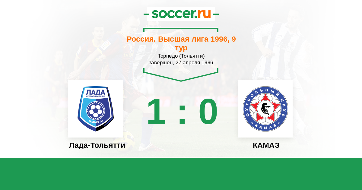 Россия. Премьер-Лига 07.09.1996 КАМАЗ Логотип футбольный клуб КАМАЗ (Набережные Челны) 2:0 Логотип футбольный клуб Лада-Тольятти Лада-Тольятти