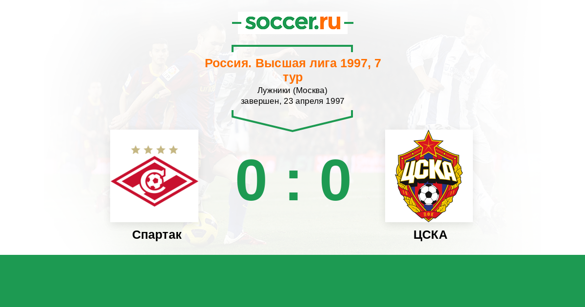 Россия. Премьер-Лига 23.08.1997 ЦСКА Логотип футбольный клуб ЦСКА (Москва) 0:0 Логотип футбольный клуб Спартак (Москва) Спартак