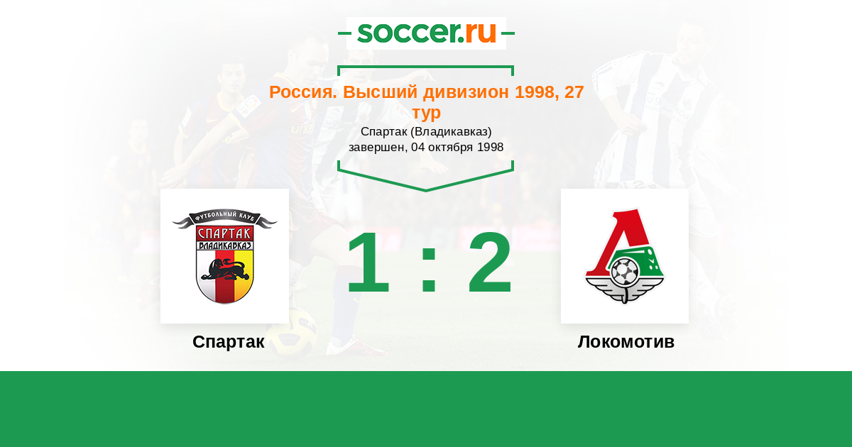 Россия. Премьер-Лига 17.06.1998 Локомотив Логотип футбольный клуб Локомотив (Москва) 0:0 Логотип футбольный клуб Спартак (Владикавказ) Спартак