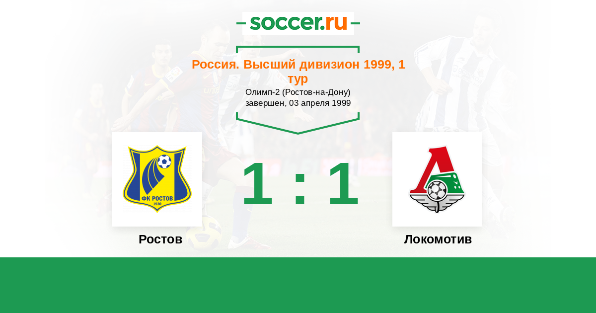Россия. Премьер-Лига 02.04.2011 Локомотив Логотип футбольный клуб Локомотив (Москва) 1:1 Логотип футбольный клуб Ростов (Ростов-на-Дону) Ростов