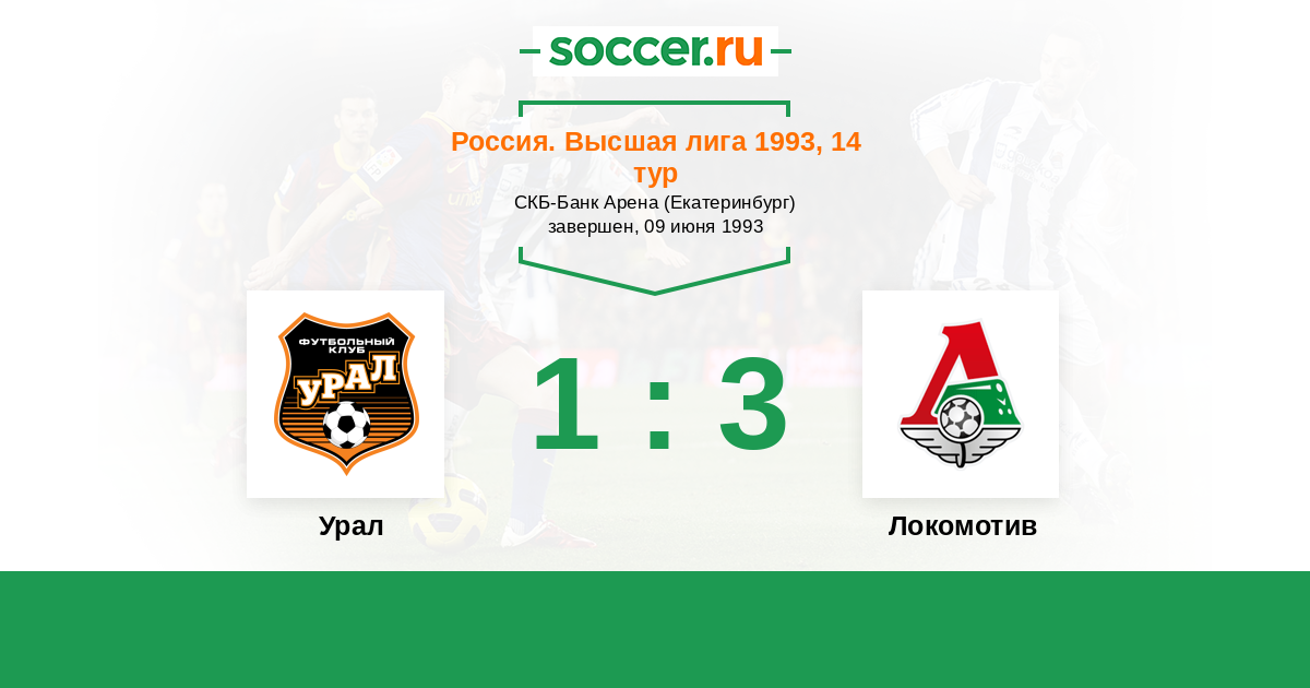 Россия. Премьер-Лига 03.10.1993 Локомотив Логотип футбольный клуб Локомотив (Москва) 3:0 Логотип футбольный клуб Уралмаш (Екатеринбург) Уралмаш