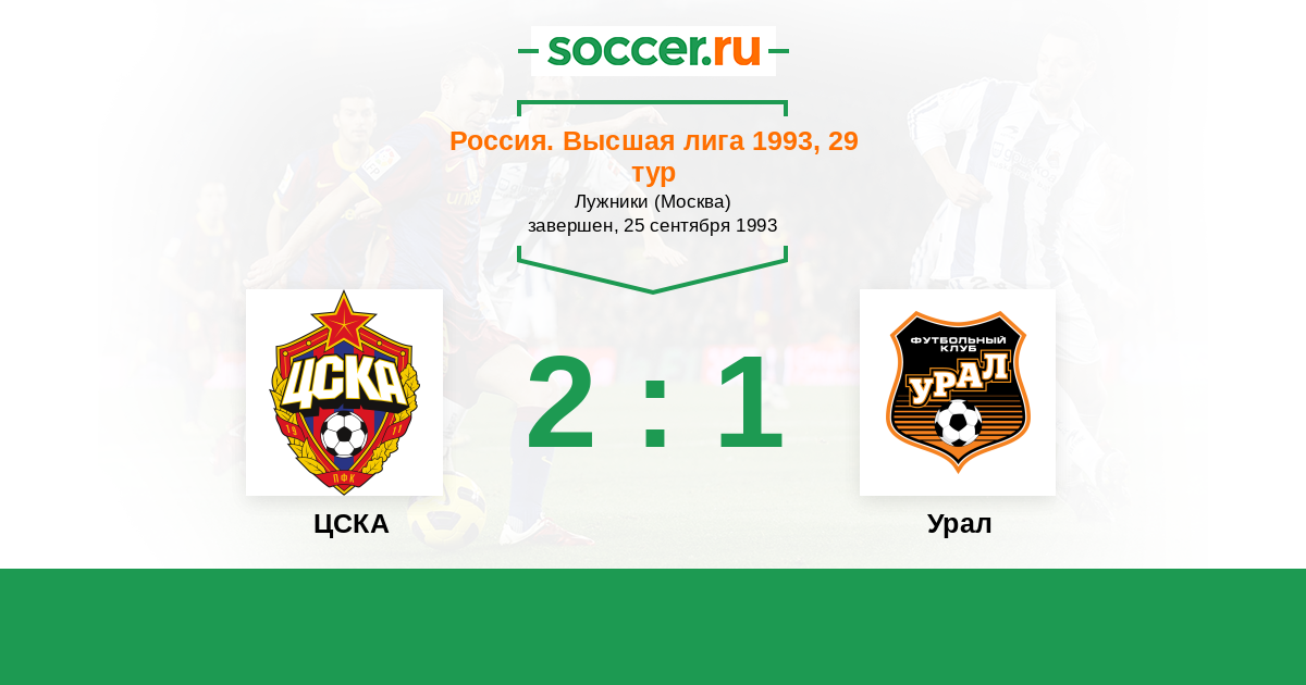 Россия. Премьер-Лига 05.06.1993 Уралмаш Логотип футбольный клуб Уралмаш (Екатеринбург) 1:0 Логотип футбольный клуб ЦСКА (Москва) ЦСКА
