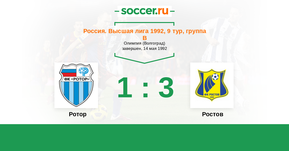 Россия. Премьер-Лига 30.07.1992 Ростсельмаш Логотип футбольный клуб Ростсельмаш (Ростов-на-Дону) 1:3 Логотип футбольный клуб Ротор (Волгоград) Ротор