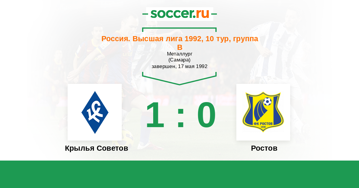 Россия. Премьер-Лига 02.08.1992 Ростсельмаш Логотип футбольный клуб Ростсельмаш (Ростов-на-Дону) 1:1 Логотип футбольный клуб Крылья Советов (Самара) Крылья Советов