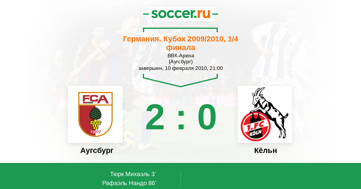 Германия. Бундеслига 31.03.2012 Аугсбург Логотип футбольный клуб Аугсбург 2:1 Логотип футбольный клуб Кёльн Кёльн