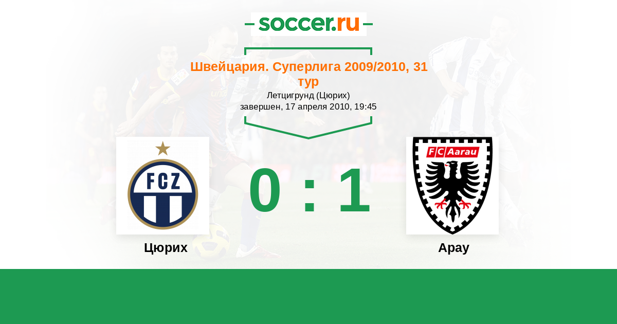 Швейцария. Суперлига 22.04.2009 Арау Логотип футбольный клуб Арау 0:3 Логотип футбольный клуб Цюрих Цюрих