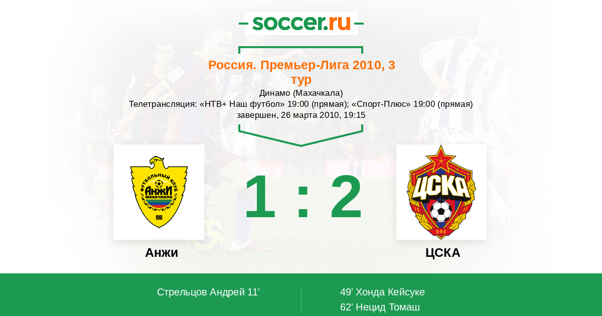 Россия. Премьер-Лига 07.04.2012 ЦСКА Логотип футбольный клуб ЦСКА (Москва) 0:0 Логотип футбольный клуб Анжи (Махачкала) Анжи