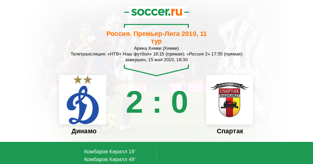 Россия. Премьер-Лига 23.10.2010 Алания Логотип футбольный клуб Алания (Владикавказ) 0:0 Логотип футбольный клуб Динамо (Москва) Динамо
