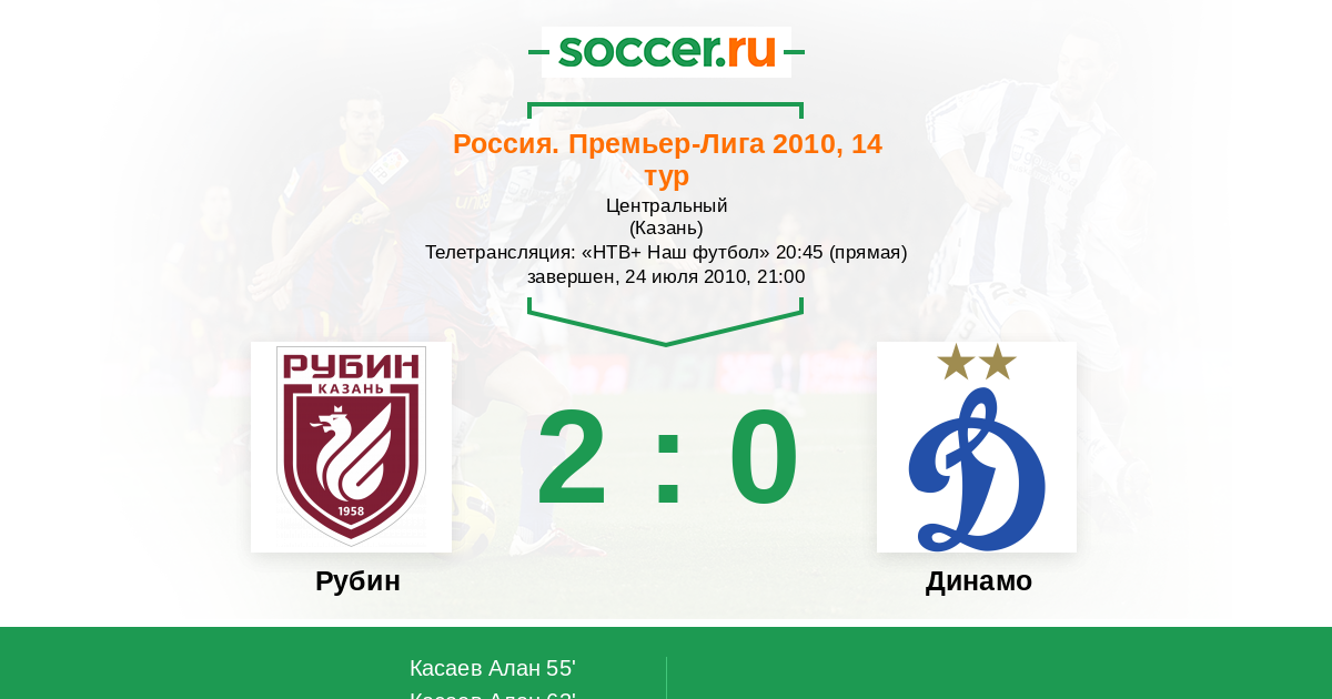 Россия. Премьер-Лига 13.11.2010 Динамо Логотип футбольный клуб Динамо (Москва) 2:2 Логотип футбольный клуб Рубин (Казань) Рубин
