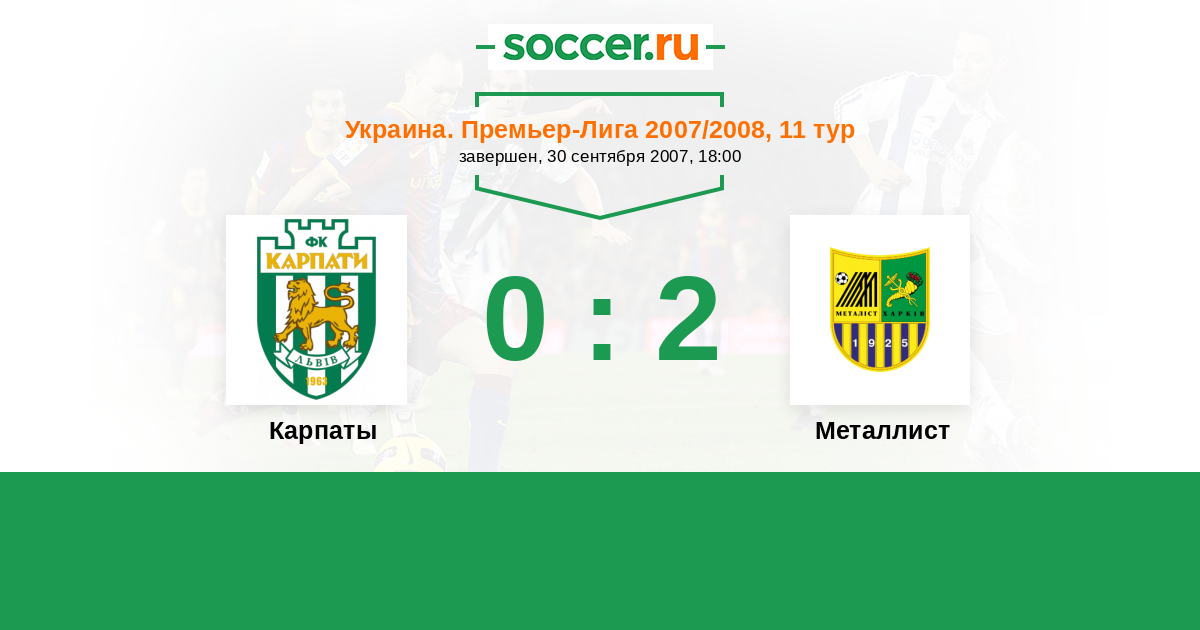 Украина. Премьер-Лига 21.09.2008 Карпаты Логотип футбольный клуб Карпаты (Львов) 0:2 Логотип футбольный клуб Металлист  (Харьков) Металлист