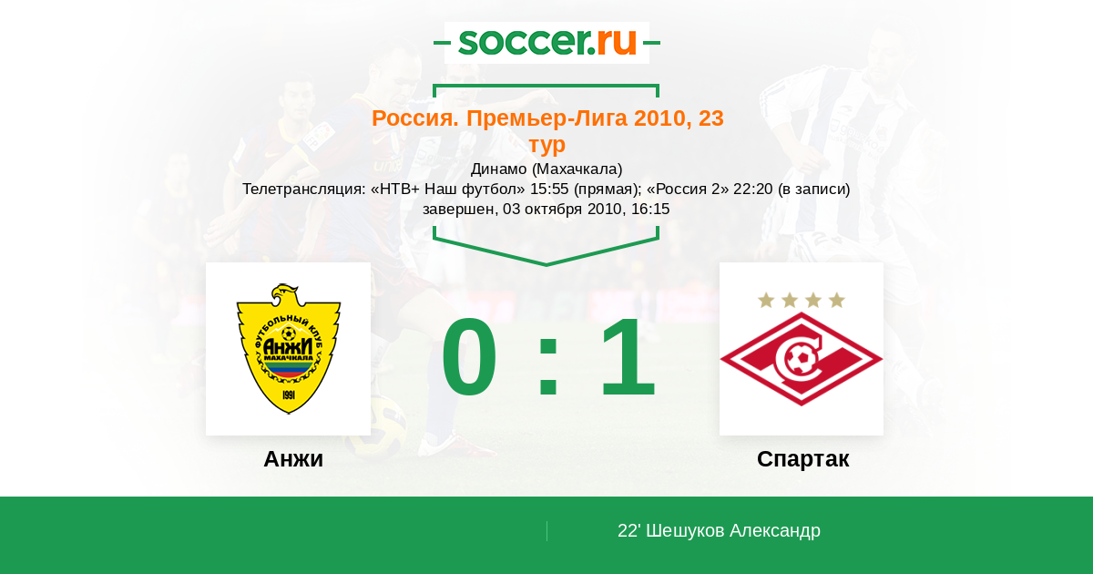 Россия. Премьер-Лига 06.05.2010 Спартак Логотип футбольный клуб Спартак (Москва) 3:0 Логотип футбольный клуб Анжи (Махачкала) Анжи