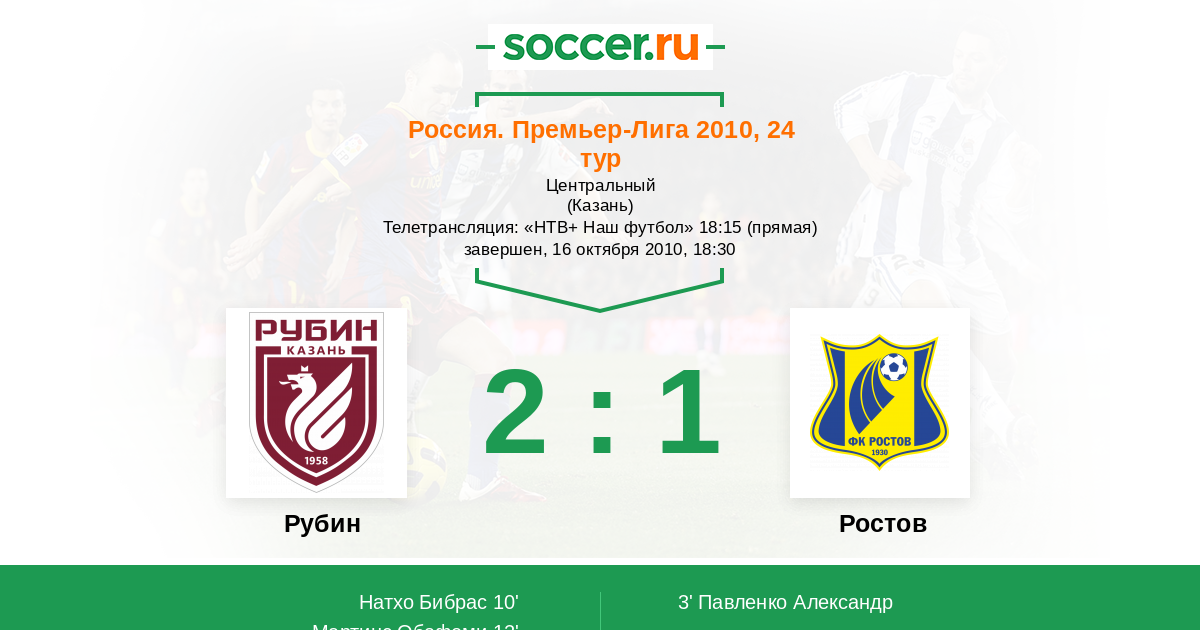 Россия. Премьер-Лига 10.05.2010 Ростов Логотип футбольный клуб Ростов (Ростов-на-Дону) 0:2 Логотип футбольный клуб Рубин (Казань) Рубин