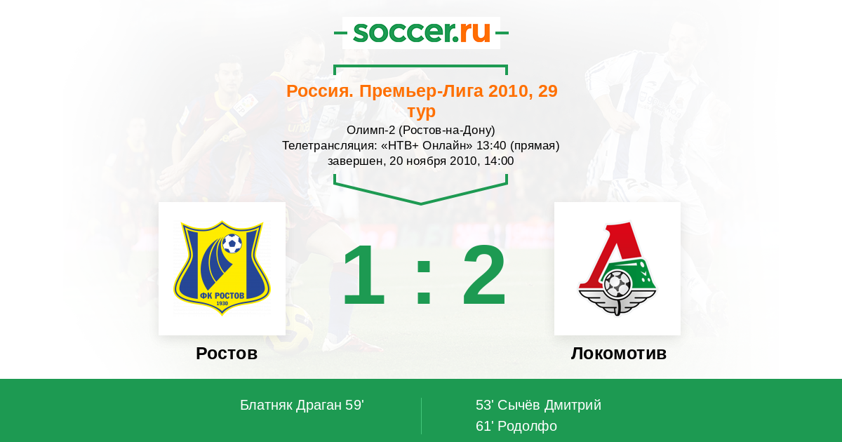 Россия. Премьер-Лига 01.08.2010 Локомотив Логотип футбольный клуб Локомотив (Москва) 0:1 Логотип футбольный клуб Ростов (Ростов-на-Дону) Ростов