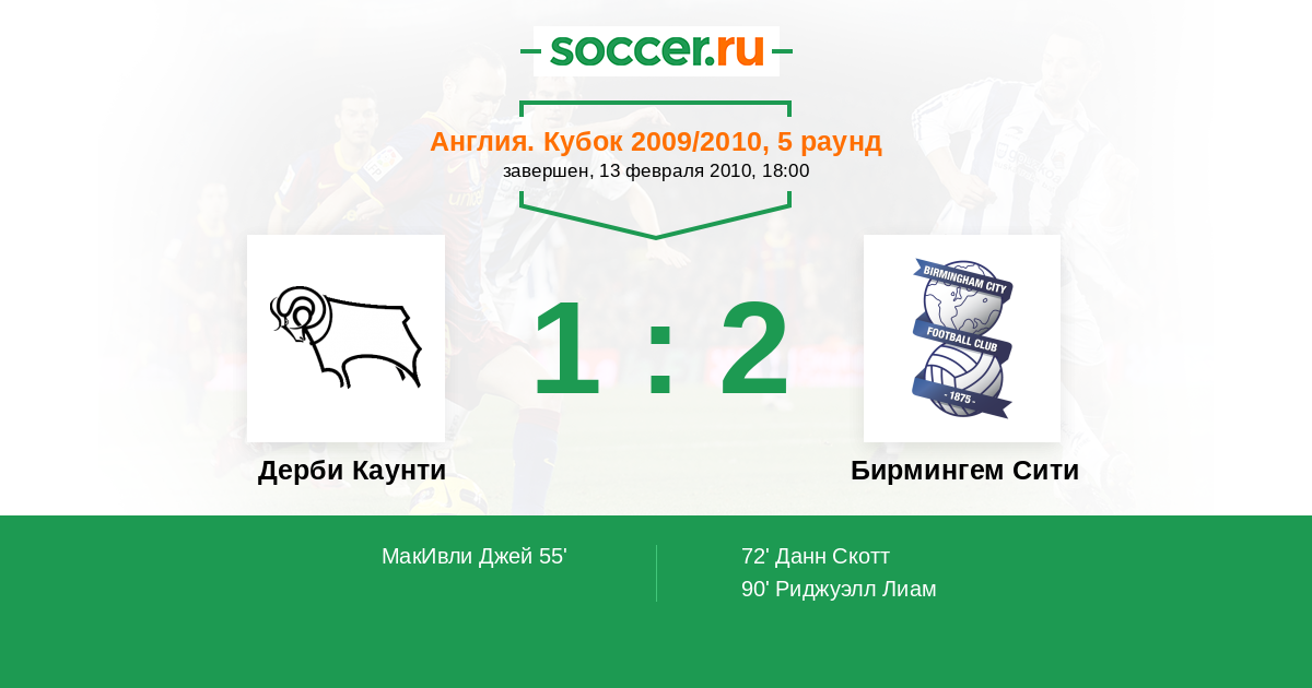 Англия. Чемпионшип 27.01.2009 Бирмингем Сити Логотип футбольный клуб Бирмингем Сити 1:0 Логотип футбольный клуб Дерби Каунти Дерби Каунти